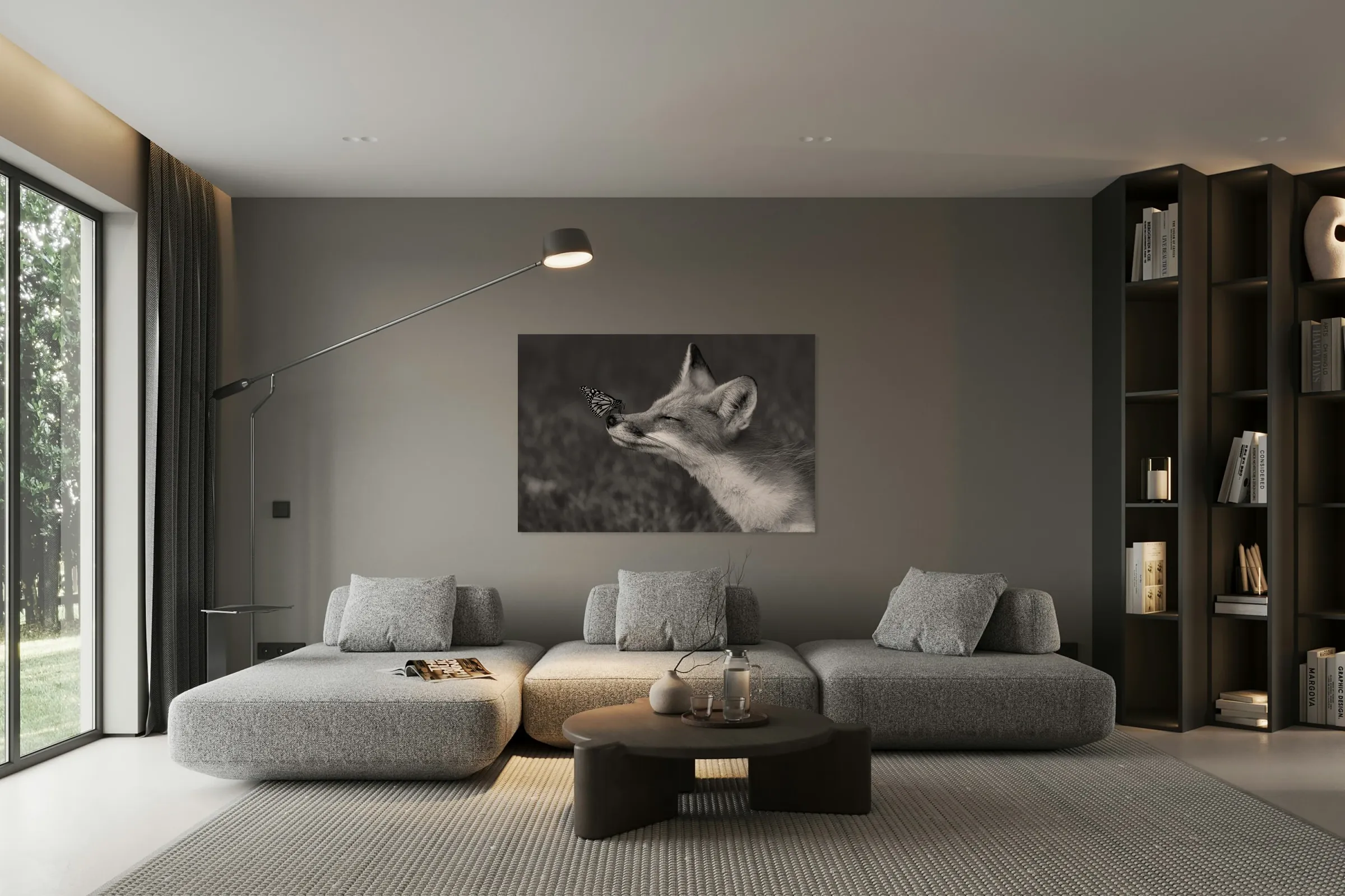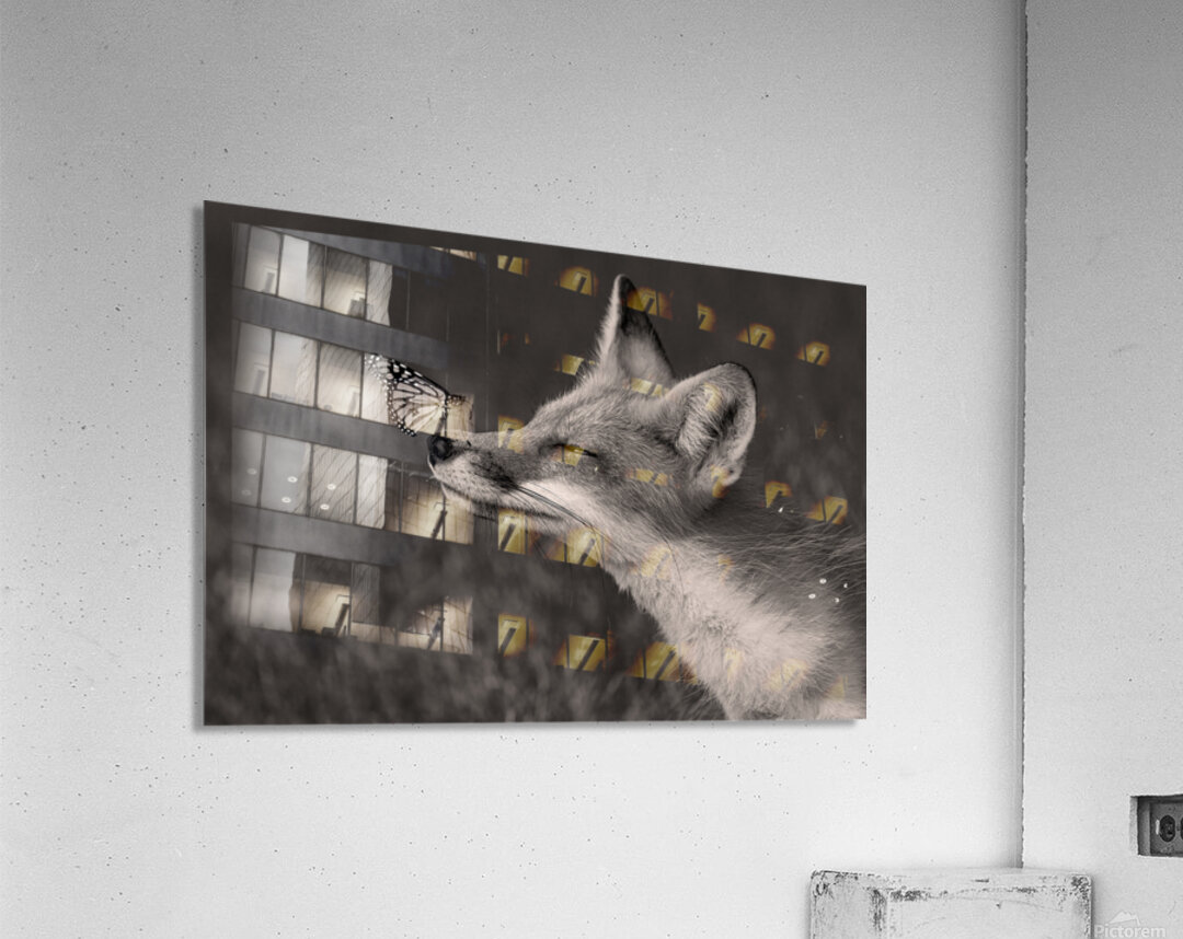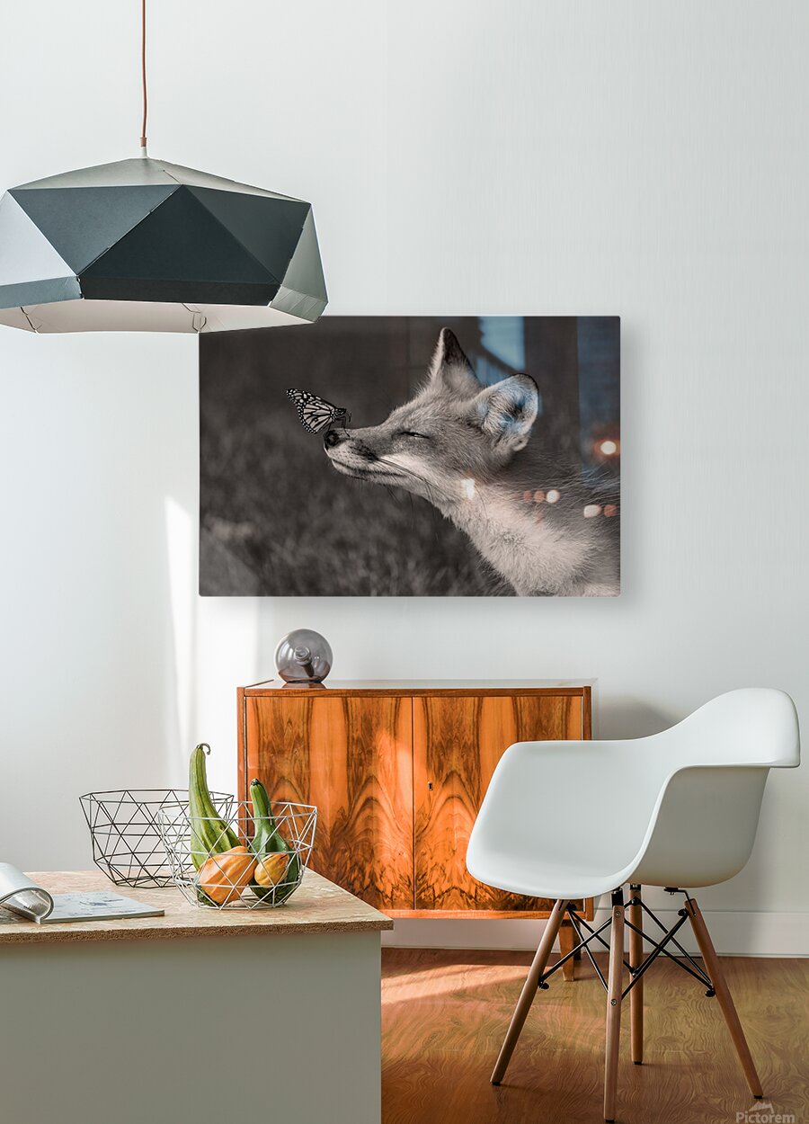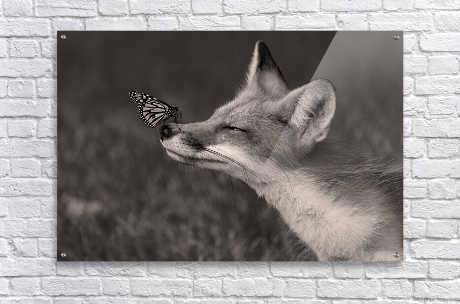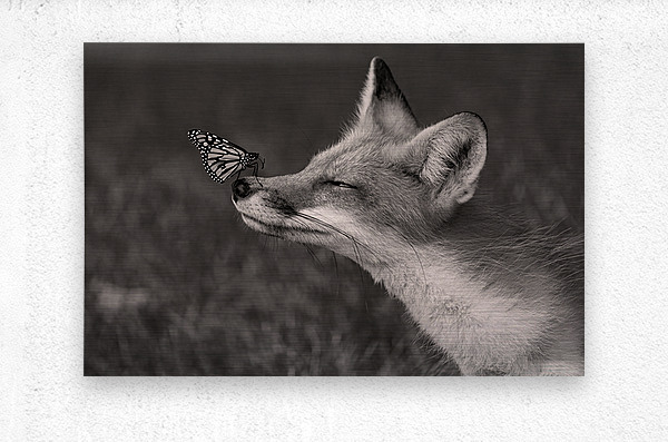 ABOUT THIS ARTWORK: RED FOX WITH BUTTERFLY BW
