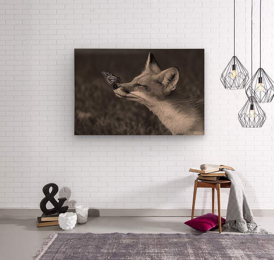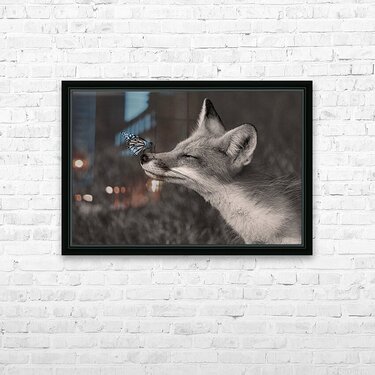 Red Fox with Butterfly BW Picture Frame Printing